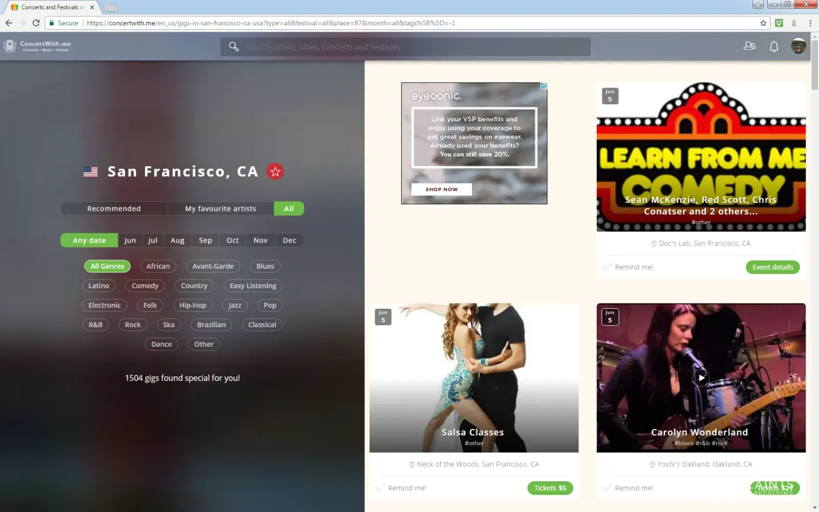 There is a "ConcertWith.Me" group/app in FB which actively posts the Concerts Information & Ticket sales around your area. It happened to me to click their ad for Roger Waters Concert in San Jose, CA and they took me to the Venue map and showed me the prices and to me it looked a very legitimate website like TicketMaster and I bought a ticket from them.