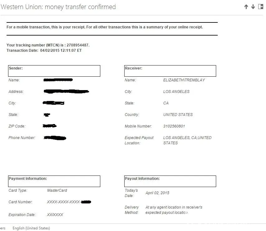 Western Union Scam Fraud