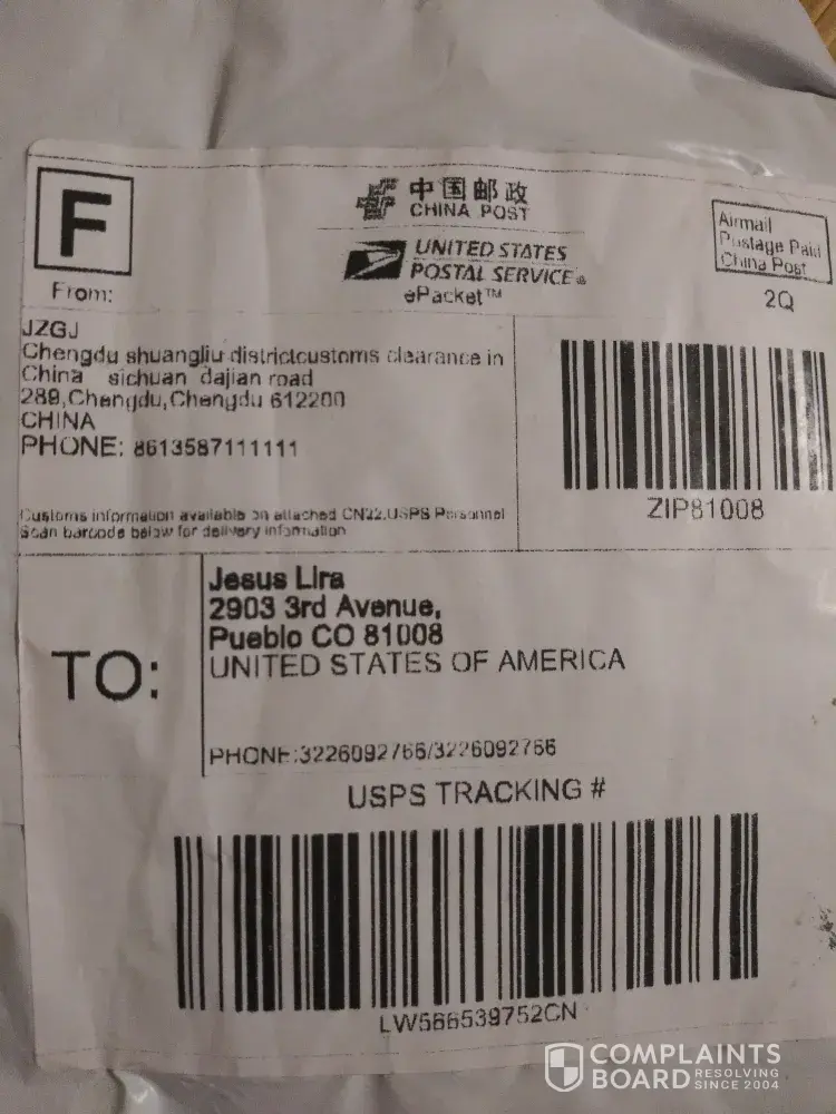 This was ordered from Seunglee Seunglee, Sichuan shuangliu huaanghe road 189 ChengDushi Sichuan 610200 China.