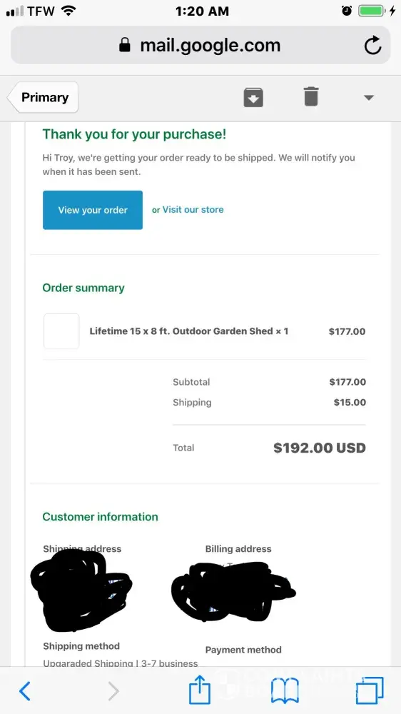 Thanks For Your Order Scroll down to view order details
