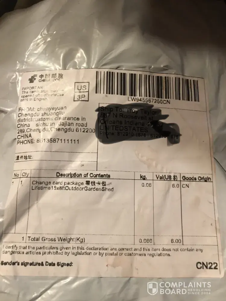 Verified customer This complaint was posted by a verified customer. Learn more