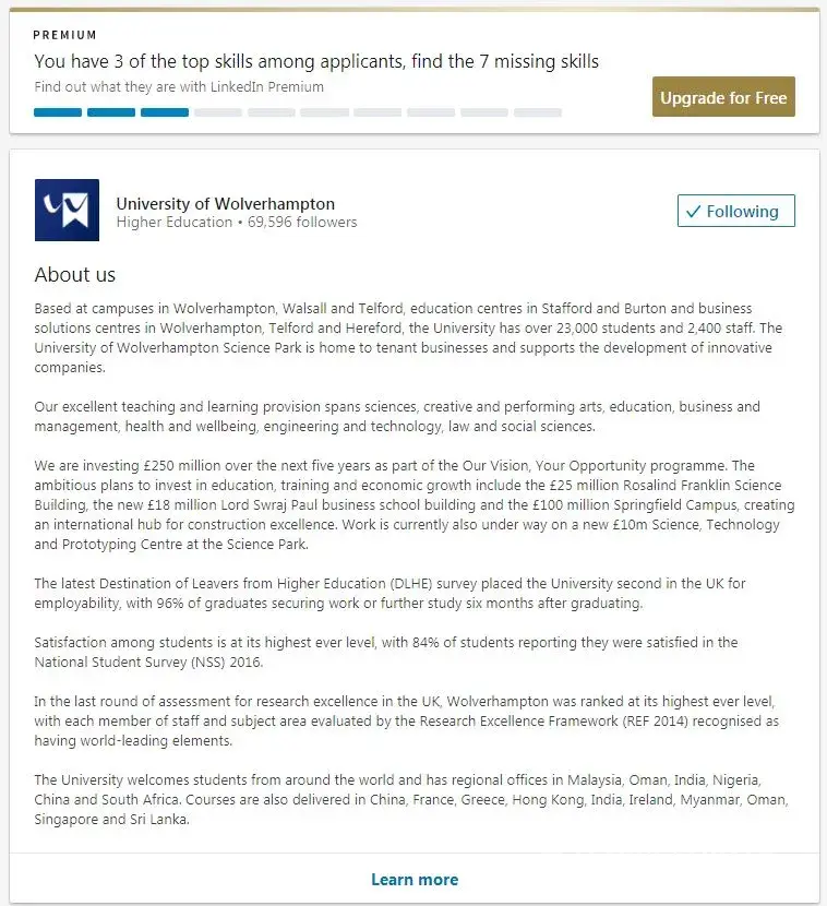 I think it is related with a job application which is published by University of Wolverhampton in Linkedin, they publish and you apply with your CV then they have all details about you and send an email.