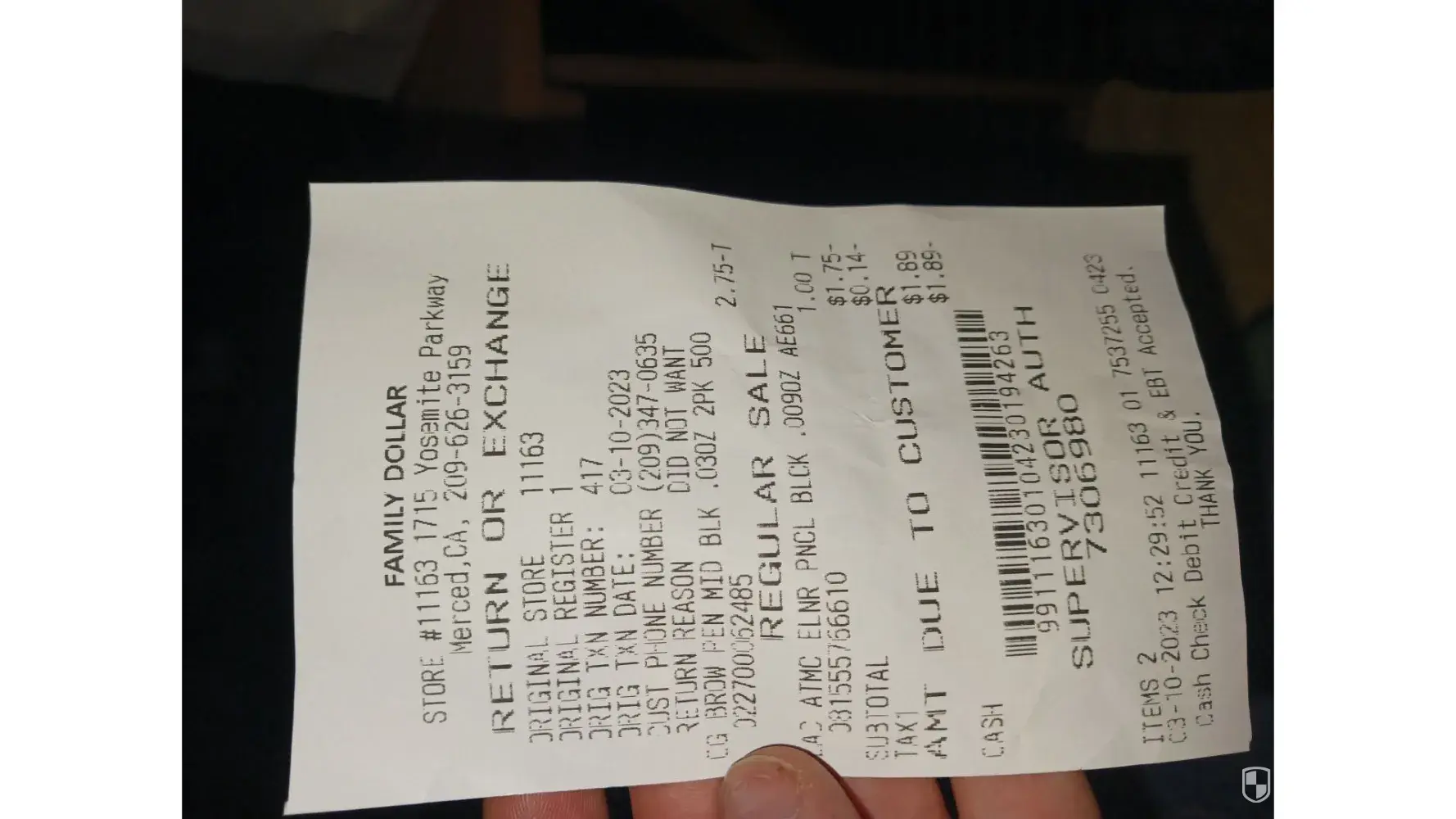 On February 26, 2023, at approximately 4:11pm, I purchased items from a Family Dollar store located at 3414 North Main Street in Columbia, South Carolina.