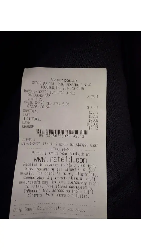 I went to the Family Dollar #03498 at 10903 Scarsdale Blvd Houston Tx. 77089