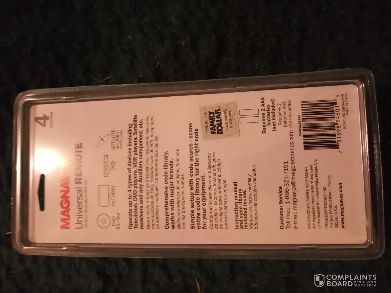 Read full complaintmagnavox universal remote control 731398345014