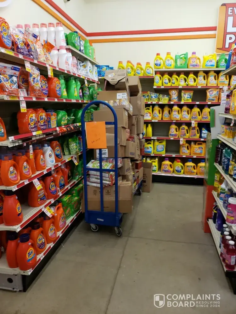 First off this store is the trashiest store I think I've been in. There are always piles of boxes and inventory blocking the aisles and everything is always a mess. What I have a problem with is that they have a hand written note on the door that says no bags and no hoodies in the store due to high theft. I do not have a car and have to walk my grocerie...