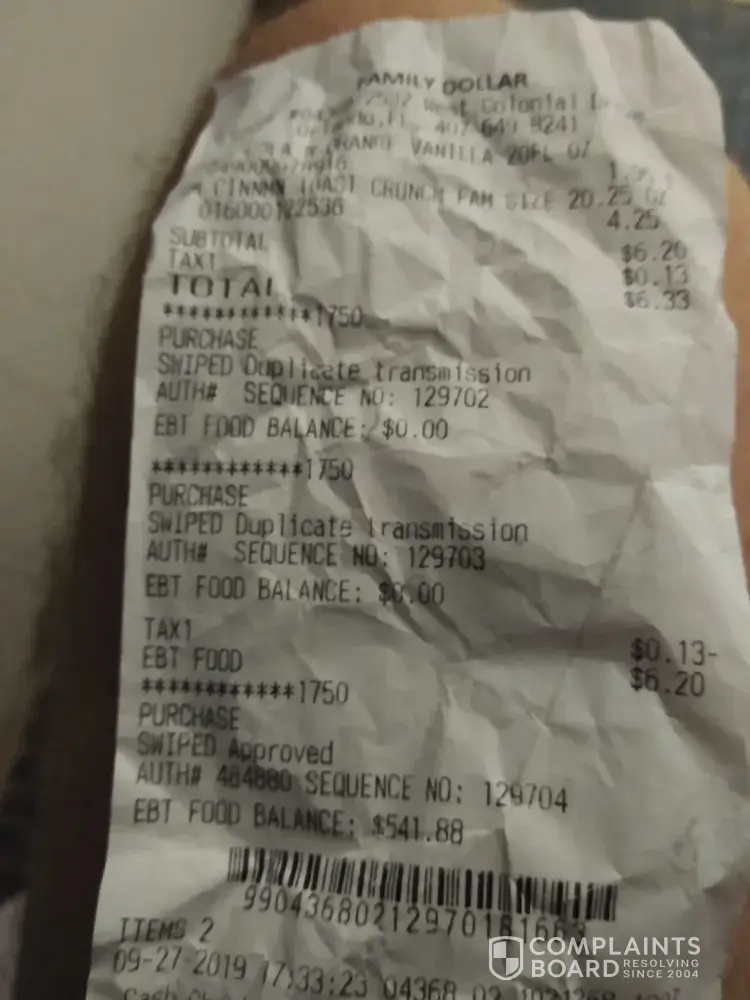I was trying to use my Florida SNAP program card when it said that I had a duplicate sales and could not make that purchase I had to take an item off after 2 tries and it almost blocked my card for the day why would it matter if I'm trying to buy the same three things I hadn't been to family Dollar and maybe a couple of days thank you for looking into the matter please get back to me as soon as possible