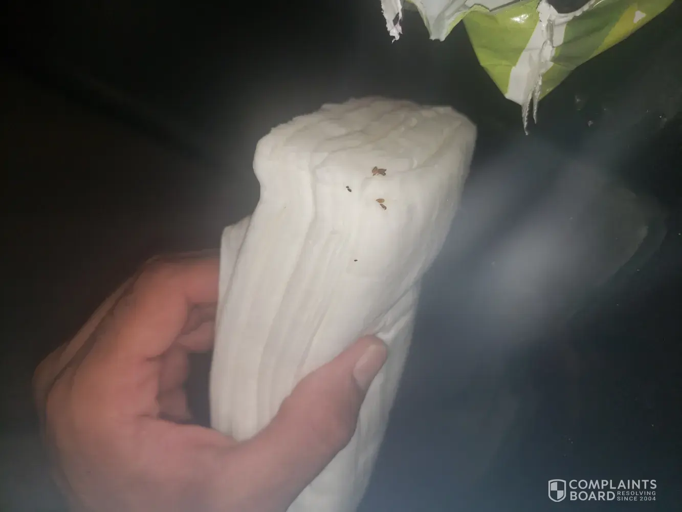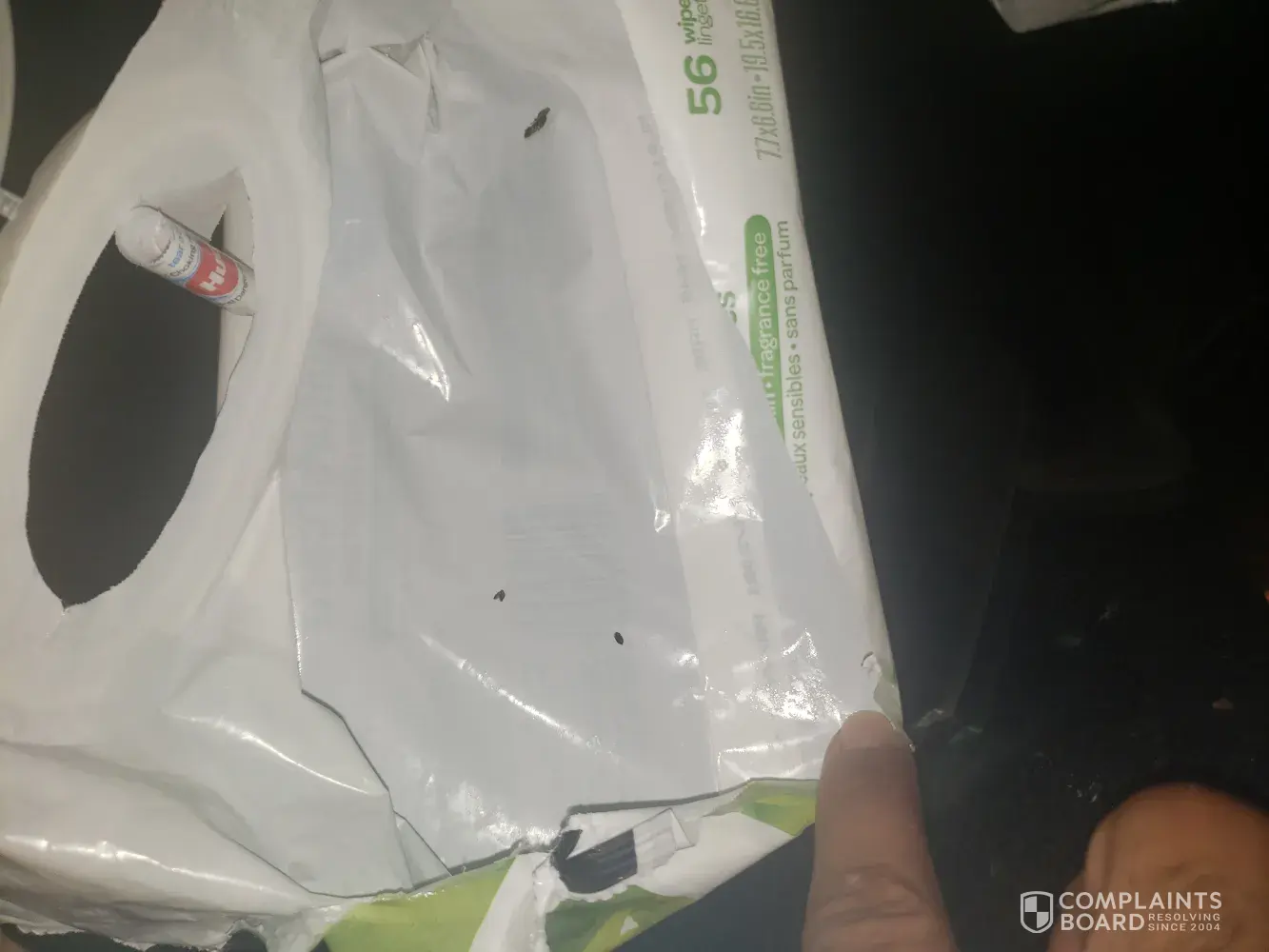 I purchased a three pack of wipes from my local family dollar about a week ago and when I opened the first pack of wipes I noticed what appeared to be dead bugs in the pop up top of the wipes... I was completely confused as to how when I just opened them. I continued to open the complete package of wipes and there where more bugs inside the pack of wipe...