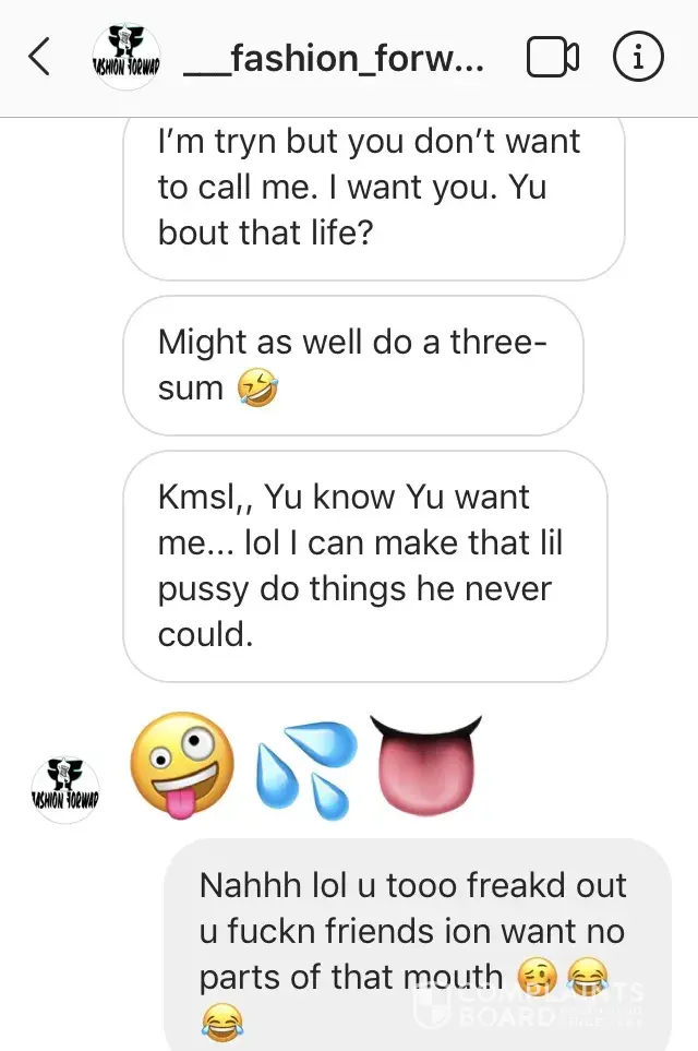 I contacted Human Resources in the past about a sexual Harrasment issue but it never was investigated. It was with my Fiance (Jamie Rachelle Brown) Mobile # [protected] and a male Assistant Manager at the Store (Charles Dylon Love). He always makes comments about her butt and sexual comments and innuendos I even have a recording of him suggestion oral to...