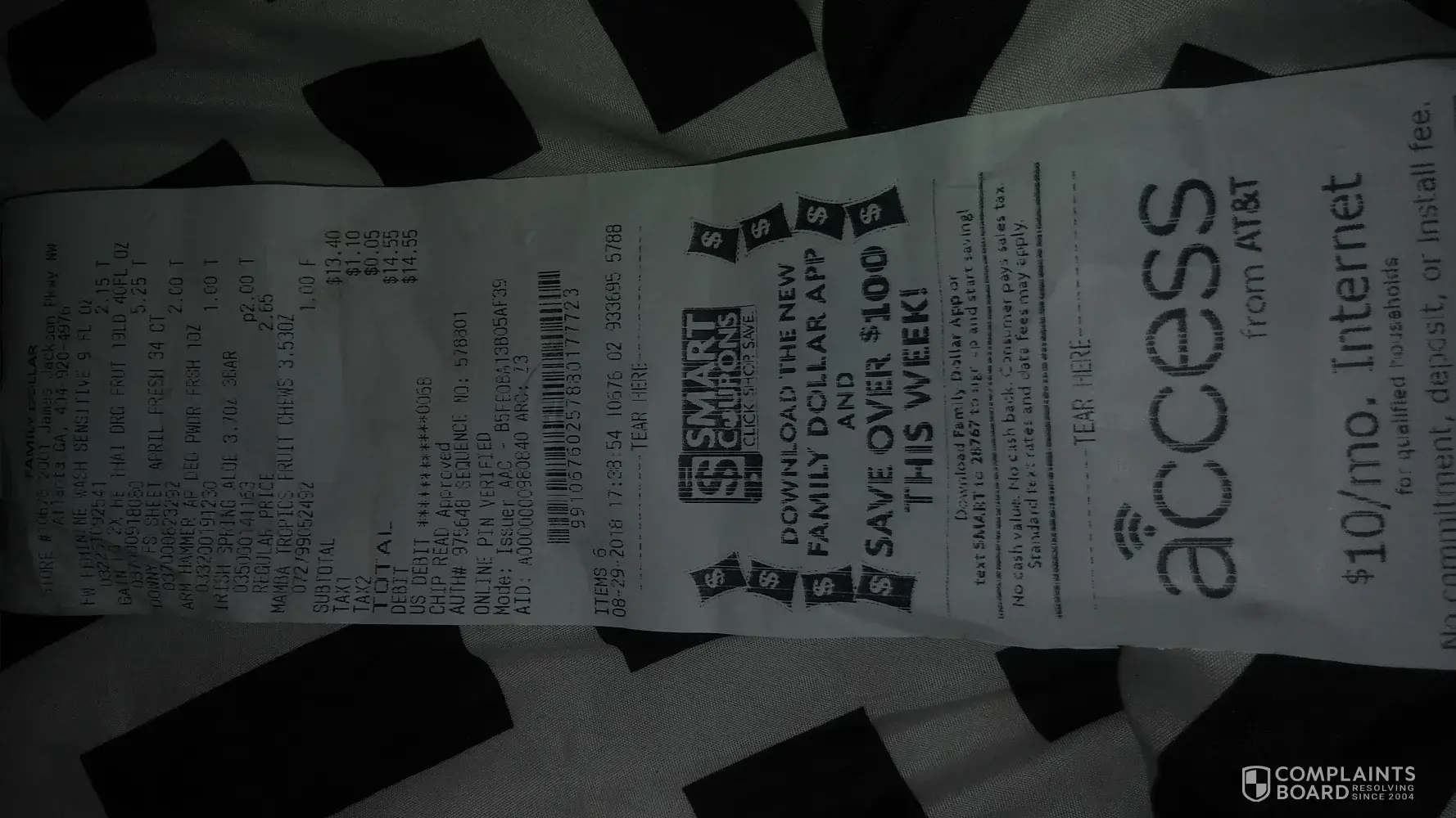 I Purchased a total of #22 items, receipt #[protected]-7763 Everything went Great I caught an awesome labour day sale Family dollar had going, I saved 5 bucks on that order from My Family Dollar coupon App lol! However as usual After getting home and going over my Goods #2 of the items I purchased in hopes to add to a gift basket for my baby girl birthday next week this one is special to me cause I won't be there