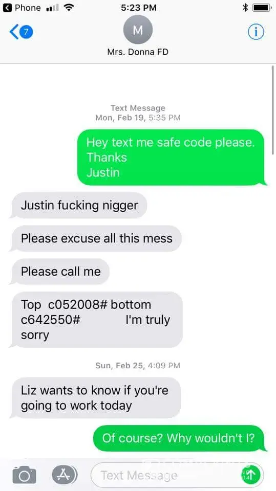 For those that don't know I was a manager at Family Dollar in Raleigh, NC for sometime. I left Rock Quarry Rd store from Amber Pike was an awesome store manager/trainer and went to south Wilmington st where the trouble began. So on my first day as Assistant Manager at this store with a lady named "Donna Parker" I text her and asked her for the safe code and her response was "Justin A [censor]ing n[censor]" (pic below) so I immediately was like wait what the [censor]! When I finally answered her call she kept telling me how sorry she was etc etc so I hung up on her.