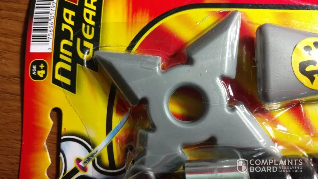 The star is hard plastic and has a definitive sharp points. The knife could put someone's eye out easily. I had to exert a great deal of force to even pull apart the chain, which I'm sure most 5 or 6 year olds would be able to do.