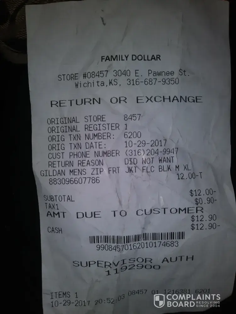 Its 35 mins til close im shopping like always at family dollar said hi when i walked in im a regular so i was noticed.spoke and began shopping only went to get laundry soap n t.p. but seen discount jackets stopped locked seen 1 and put in carr got my list its 17tilclose im getting checked out the nice gentleman that was assiating me was talking to me and i didnt have a jacket with a tag on it and he quoted 10$ i agreed paid bill loafed n left.as im walking out at door i seen it was 15 not 10 i asked my husband who was taking laundry soap to truck to hand me nak jacket im gettin my $ bak well Nika not sure how to spell says right away " r i serious" i turned to ask what do yoy mean i just bought this and was not price i got told i wanna refund mind you she standing at the door tearing down box and saus well we have a policy no refunds at night.i say excuse me is there a sign saying so because he which i ment clerk said no problem.now ibstead of helping she insisted on arguing saying WEll its almost closed and not to mention i have to go around and use my key so i said well you couldve been there already and i told her no way to talk to a regular dam near everday customer like this.she kept ob saying well its been a long day and i dont care how im talking i juat now i dont have time for this and kept gpung and foung making me very angry amd upset.and the whole time she arguing not doing nothing .its total time 7til close i was in my vehicle goin home.now im 45yrs old been going day1 since they opened as well as my mom sister hubby.and we alk shop almost everyday you can rewind video see me all the tine.but now since family dollar wants to treat a regular like this im so upset been mad all evening not fair to be yelled at and talked so nasty to.i will not ever shop again at a family dollar and neither my family.dollar tree will now have our buisness.wish that on 10/29/2017 would rewind videos at 35mins til close.omg you will be disappointed.