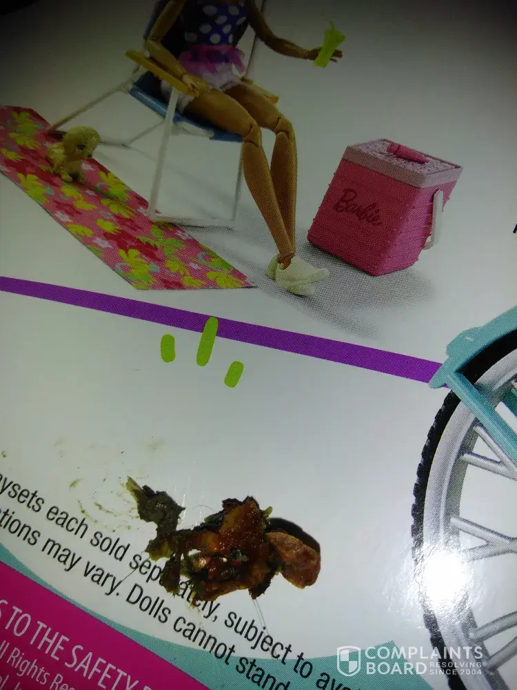 When opening the package inside the Barbie basket was what looked like mold. I'm not sure what it is but it looks unsanitary.what else can I say ive posted two pictures of it?