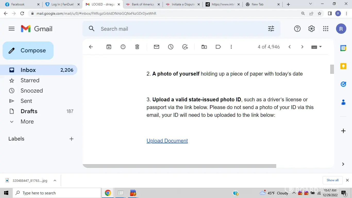 On 12/12 on or about I saw an ad for fanduel on fbk with match play. So I went, and deposited 20 or so and started to play blackjack and won. I kept getting popups while playing about my wagers and annoying but I kept winning for 4 days. I had 4 - $100 Withdrawals which I never got and on the last win day they blocked me on the 12/15 then reopened and blocked me again 12/16 and I am still blocked. No reason, no emails, the 609 #is a voice message, the chat can't answer any ? with a locked account? How's this they can see the file, and I heard nothing until yesterday I got an email saying my acct had inconsistencies and needed ID verification. WTF - they took my money and didn't ask for ID and wanted me to write the date on a piece of paper and hold it to my face and sign it, and send the DL and copy of the bank card covering the numbers not needed. What a joke... No casino asks for this type of garbage. So I complied, they found something wrong in each DL photo shot and the coating on my DL is put on by the State of Michigan and not my doing. So again, ignored and account will not be unlocked and I can't get the transaction proofs to submit to Bank for the dispute process on them as SCAMMERS. I got $400 out there, they took my money and blocked me. THIS IS A TERRIBLE