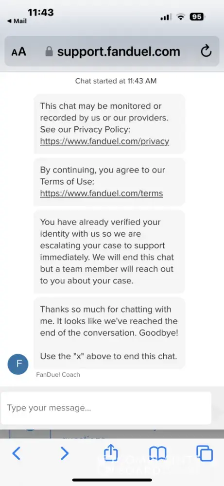“Thank you for contacting FanDuel Sportsbook Customer Support. Please accept our apology for not responding to your inquiry sooner. Our team has been experiencing significantly higher contact volume from customers. Despite the volume, your inquiry is very important to us.