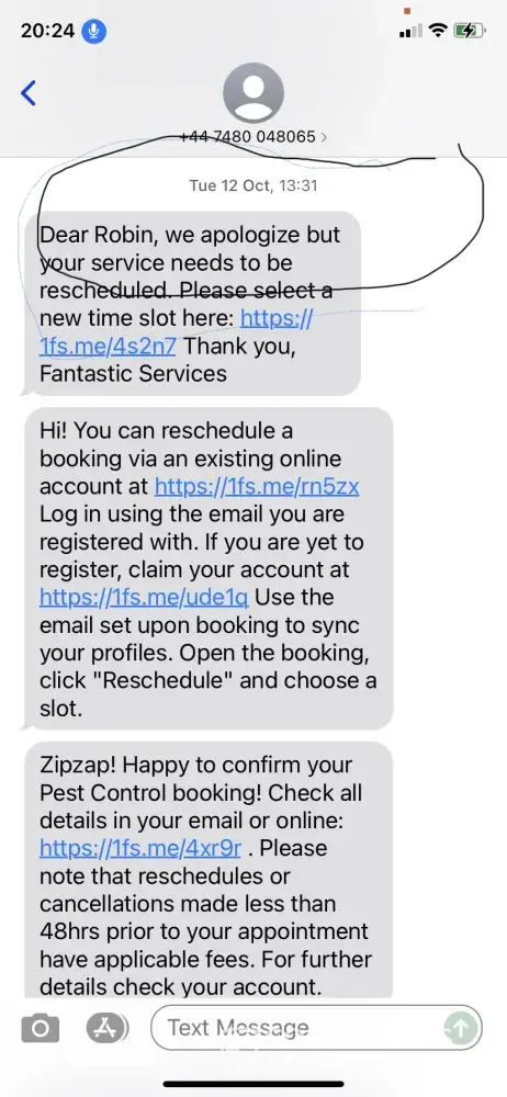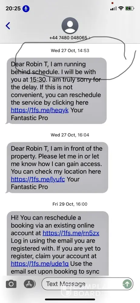 I originally booked cleaning of the above for 3pm today, weds 26th Jan, I was called and asked if the room cleaner could start at 1pm instead, I agreed, even though this meant I now had to sit in all afternoon. When I woke this morning there was a text message from a 'Fantastic Pro' asking if it was ok that they came at 11am, again I said yes.