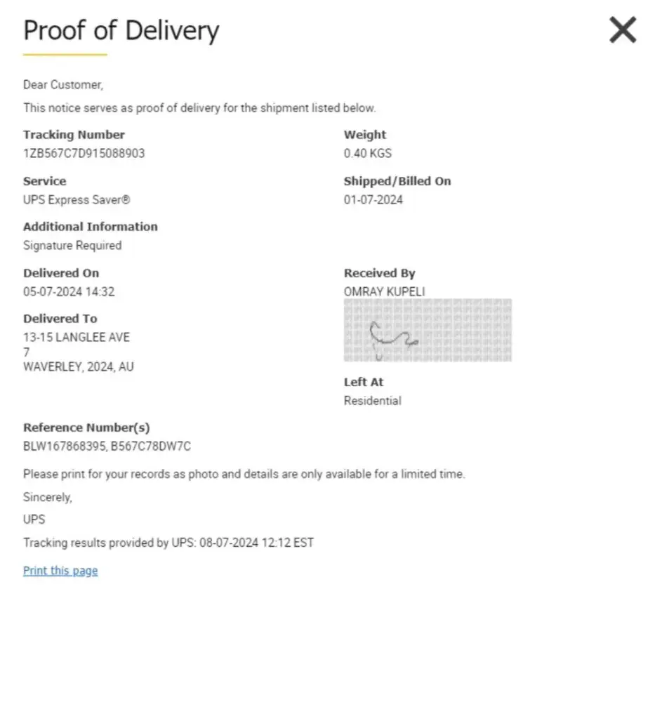 Please see the tracking number showing how my parcel was sent across the world and delivered back to my home address EMPTY.