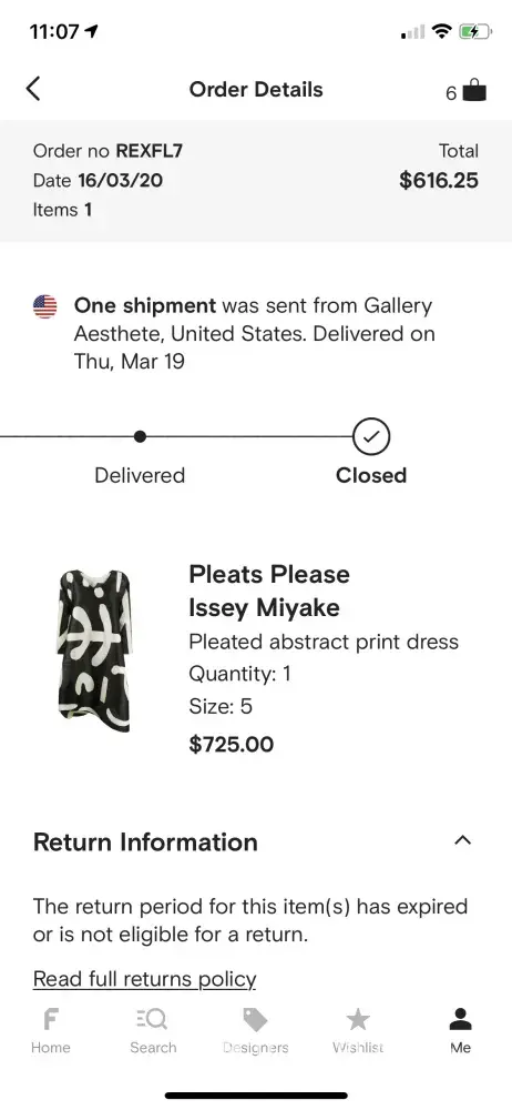 Lost package of an issey miyaki dress us$616.25