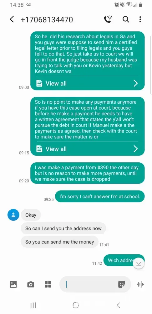 Hi my name is Manuel Sanchez I currently have an account with the Summerville store. I understand that I am behind on my account always pay on time I always buy from y'all and pay before my contract end but this time for medical problems that's the reason I was late on my payments, But I did made arrangements to pay, although the arrangements were made The...