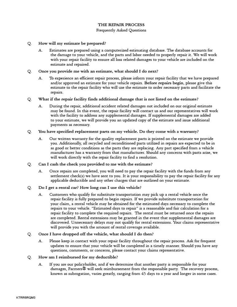 Desired outcome: A cash settlement for the actual amount of damage that was done to my car, not the Farmers virtual estimate amount which does not include all damage.