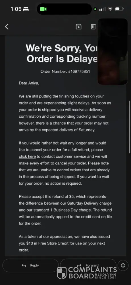 I originally submitted this in my complaint filed against Cutely Covered on May 1st: "I made a purchase on the night of April 10, 2023 during the Easter sale for a total of $101.90. I figured there may be a slight delay in getting the shipment out due to the holiday. However, I didn't think it would take this long. So I submitted a ticket through the company's messaging section on the site last week requesting an ETA on shipping. It has been over 72 business hours and I have yet to hear back from Cutely Covered. I would like to request a refund if the item is not able to be shipped within the next 48 hours. I do not want a store credit. I'm requesting a full refund due to their lack of customer service. I have attached a copy of my order details. Thank you!"Here's the response I received since they didn't allow me to respond:"Hello ***,We did respond to your email. Per our shipping policy on our website, we clearly state that order processing takes 6 business days unless it is a priority order (which was not your case). Reporting us to BBB because your order did not ship within 2 business days although we stated orders ship within 6 business days is disingenuous. Nonetheless, you have already been refunded."Clearly they didn't pay close enough attention to the full details of my order nor the actual words in my complaint. Their response to my claim came off very nasty. However, my order was placed almost a month ago and NOT 2 days ago. They only responded to me because I had already filed a claim for poor customer service. I noticed other customers complain about the lack of customer service as well.I'm grateful I received my refund and won't think to order from them again. It's always best to read reviews from other sources (the website will try to only show you the good ones)...the customers do not lie!