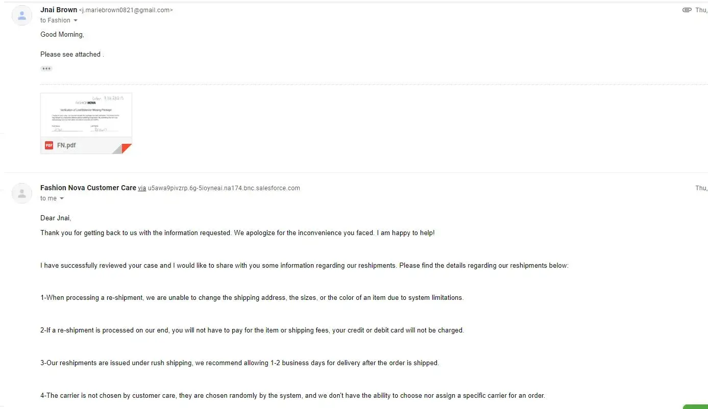 Fashion Nova Order Number: #[protected]