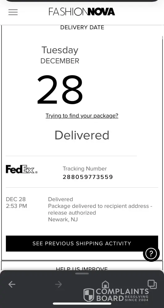 My daughter made a online purchase with Fashion Nova she has yet to receive it. She was keeping up up with the shipment because the clothes were for a trip that she planned for her college graduation out of the country. She received an email about the shipment of the package on December 1, 2021 saying shipment information was sent to FedEx, on 12/2 picked up at Hawthorne, CA and left Hawthorne, CA by FedEx. December 3, 2021 arrived at FedEx hub in Memphis, TN and on December 7, it says in transit and nothing after that. She tried to reach out to Fashion Nova with no response so she filed a claim with FedEx not feeling like it was you guys fault because you did your part and shipped the merchandise, so she filed a claim with FedEx being that the merchandise was in their possession. They denied the claim because they are telling us that we the shipper must file all claims as per their contract agreement with Fashion Nova and told us to contact the shipper for further information. It is impossible to speak with anyone at Fashion Nova so we have been emailing since this started. This is too much money to ignore the situation and to not be able to speak with anyone is just nerve racking. PLEASE RESPOND!