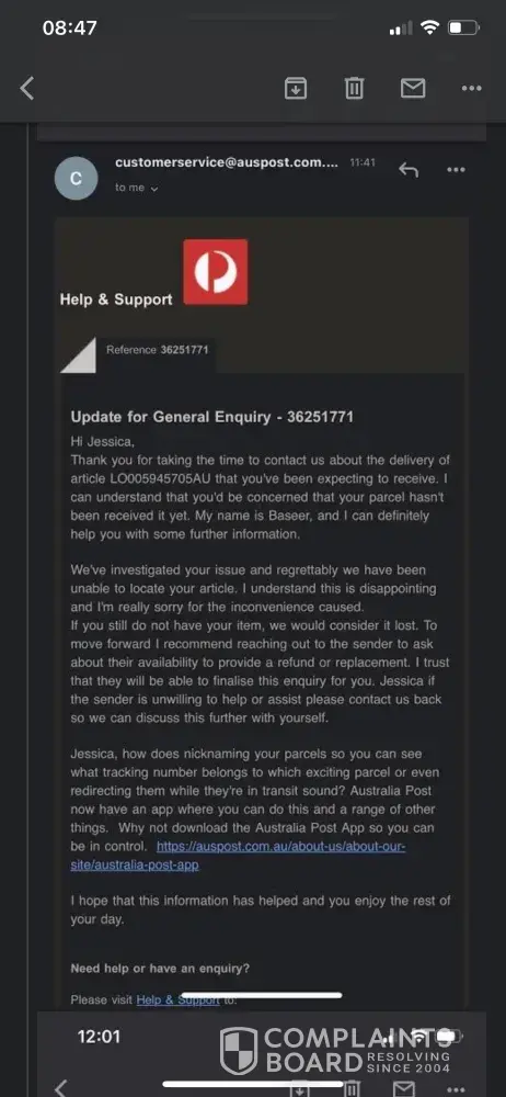 So I waited again, another 48hrs to no avail. I emailed them yet again for them to respond with ..:
