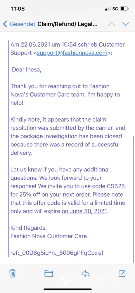 Fashionnova refuses to give me a refund, because they say it was delivered.