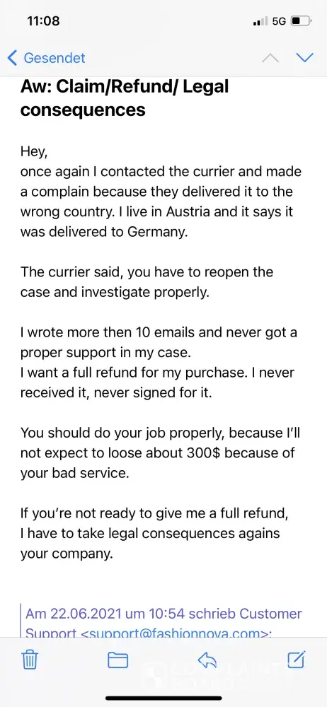 I ordered at the end of September items that never arrived and were lost in transit. The only emails Fashion Nova sent me were the automated emails once you send an email to their support email, or I don't get a response at all. I've been sending emails every week for an order that was $98.64 and I want my money back! I've contacted both delivery companies and sent Fashion Nova the responding emails stating my items were lost, to which I sent Fashion Nova the corresponding emails. This is getting ridiculous and beyond a joke for not getting a response from a well known company. It's disgusting how they treat their customers