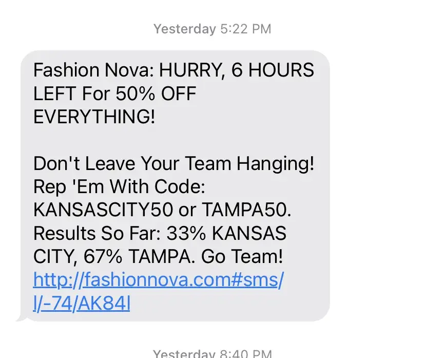 On 2/7/21, Fashion Nova had a sell on all items 50% off, I used the code sent to me from Fashion Nova from my text using TAMPA50. I put five items in my cart totaling $172.95 with tax came out to be $183.76. Once I put in the code TAMPA50, the amount went down to 86.47 with tax 91.88. I headed to check out and pushed confirm total, after the button was pushed, fashion nova website reverted my current total back to $183.76. I was charged $183.76 to my bank instead of the correct total $91.88. I reached out to fashion nova that same day and the only option they gave me was to contact them by email. I sent them two messages one on the website and one on there email. On Monday morning 2/8/21, I received an automated message saying sorry for the inconvenience but it's nothing we can do for your account while it's processing. Currently the items are being shipped but my account is still being processed? Then on top of that they try and give me a 25% discount that I have to use by today! All I ask for Fashion Nova to do is acknowledge there website was deceptive and refund me the money that is owed to me. If they can not I will gladly return my items back to them giving me MY FULL REFUND with NO STORE CREDIT or GIFT CARD.