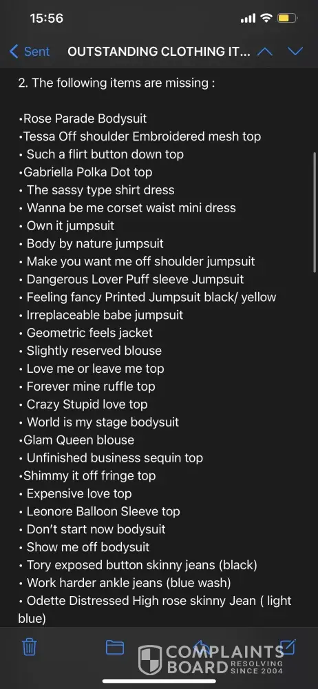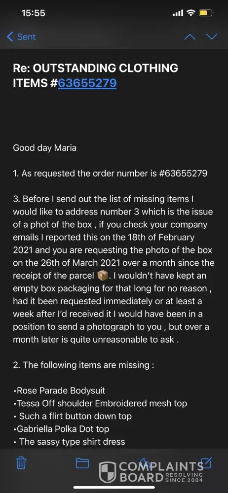 18th of February, I have sent numerous emails regarding my outstanding clothing items that were purchased on the 27th of November 2020 to no avail.