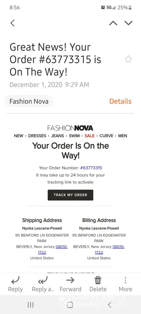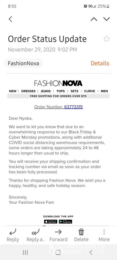I had ordered some clothes on Black friday (Nov 29, 2020) from their website FashionNovamen.
