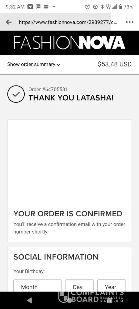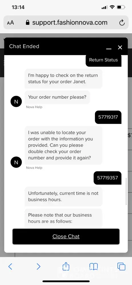 I placed an order with fashionnova back on 11/27. My expected delivery date was 12/04. My package never came, fashionnova uses a bot for chat system, I entered 2 cases with zero response and I am being charged through quadpay. I want my money back. I also filed a complaint on better business bureau. You guys been warned. Dont ever order from this site again.