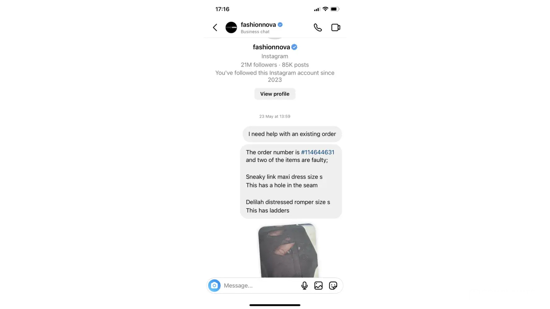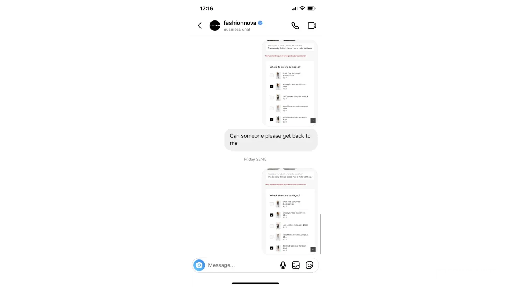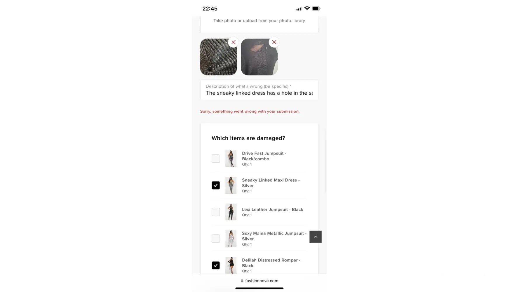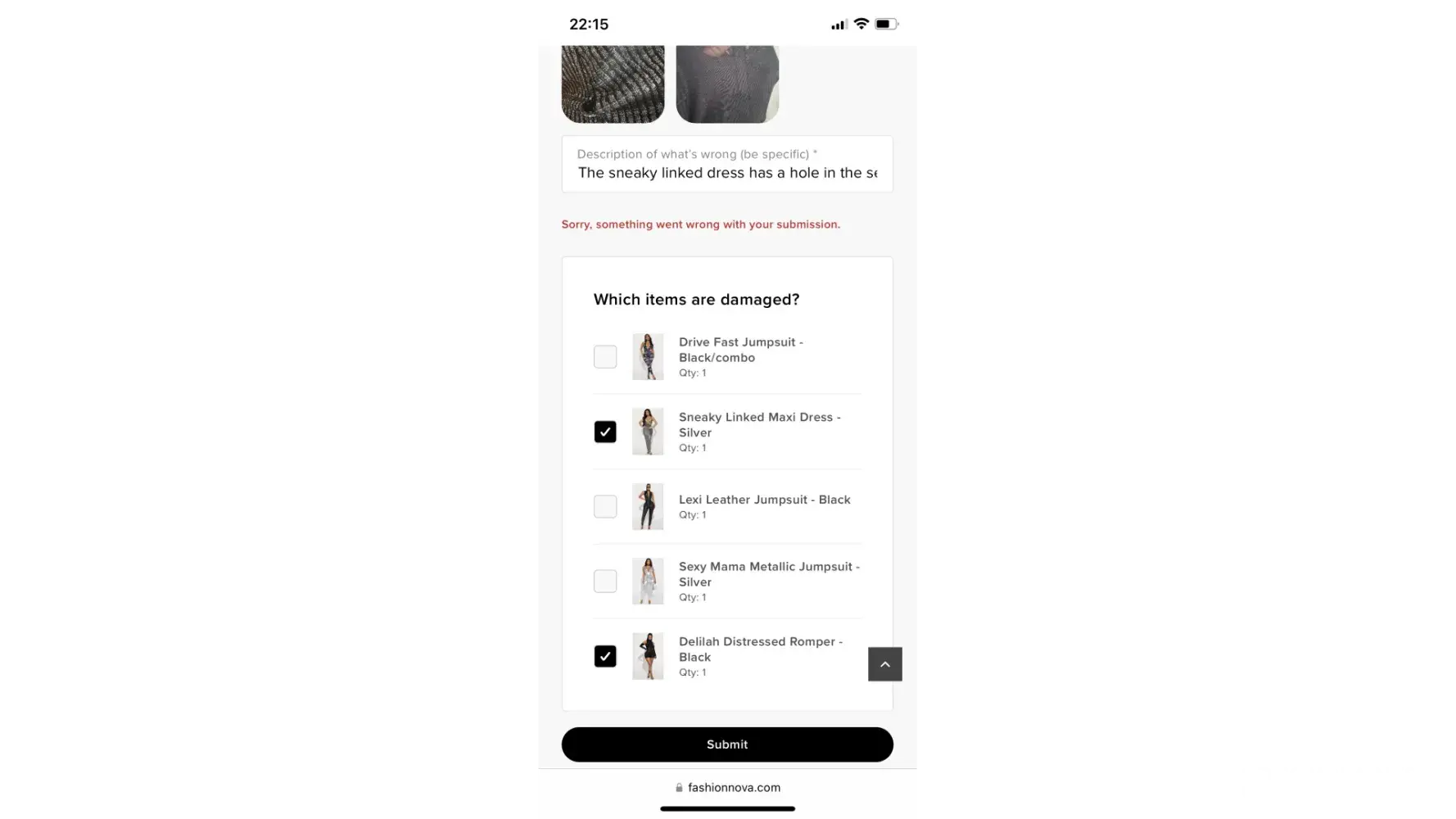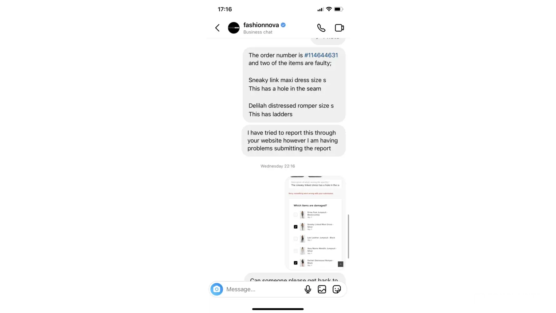 I have tried to report the two faulty items in my order since the day they were delivered, however an error keeps coming up when I try to submit it. I have also sent messages through instagram which have not been read despite somebody clearly posting on a daily basis! Fashion nova states that faulty items should be reported in a certain time frame, but how is this possible when the report page is not working and nobody is bothering to get back to me?!?