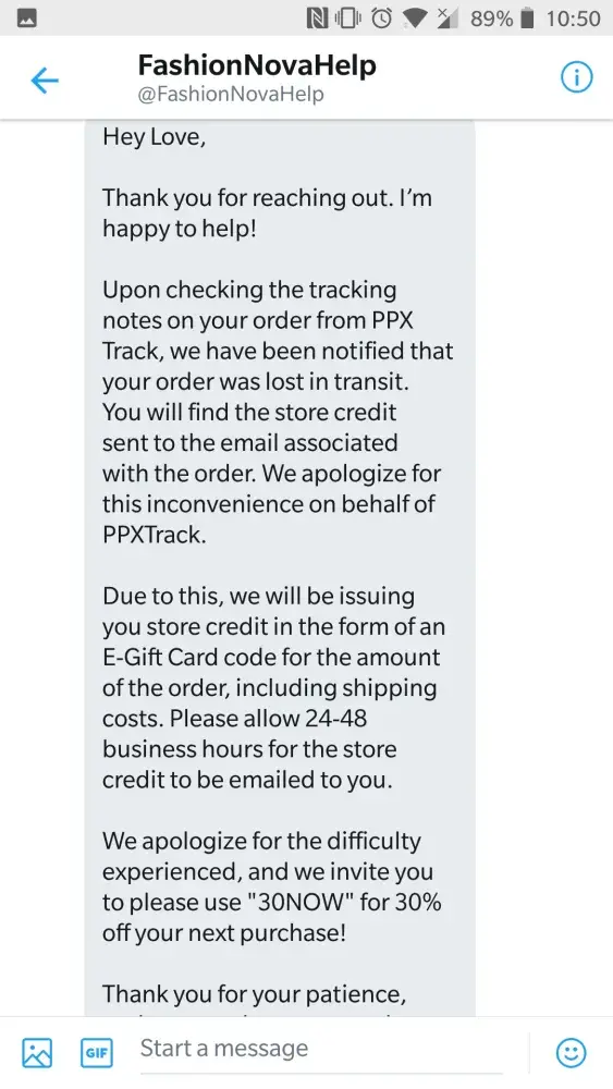 And then no follow up no response and no ownership by fashion nova whatsoever