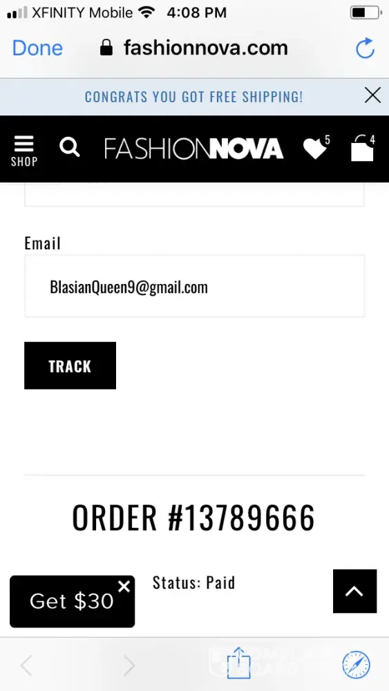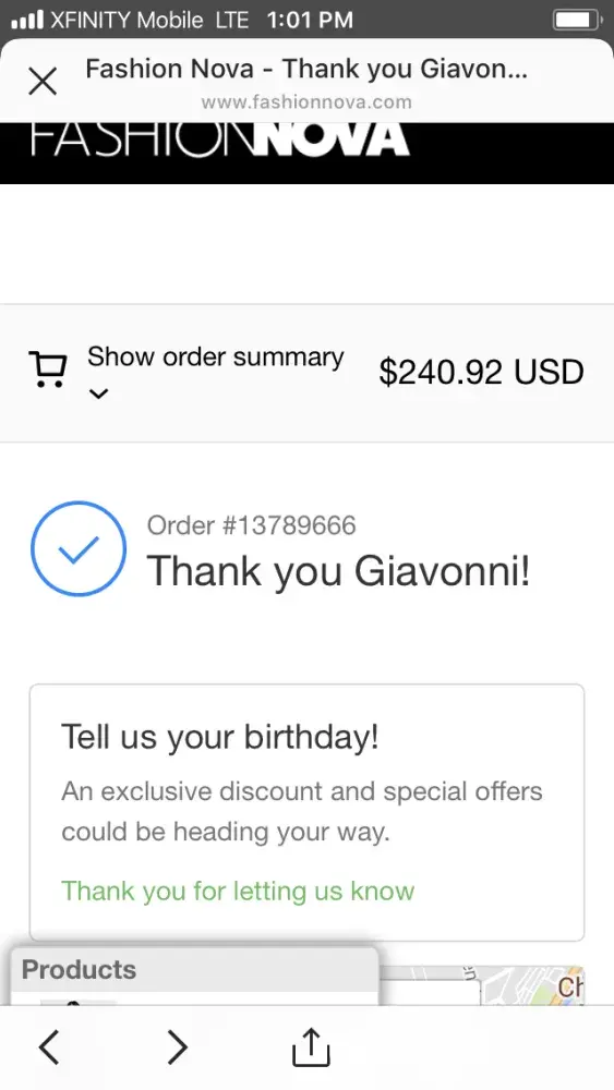 Purchased items and never received my tracking number was charged 240.92 for order # [protected] if someone can please resolve my issue would like to track what I paid for i've been emailing fashion nova email but they keep telling me that they only see one order number and that it was delivered already that is correct I received my second order it also came with tracking number but my first order never came with tracking number this order number [protected] needs to be resolved and tracked I paid for items that totaled up to 240.92 and I never received my tracking number it's been pass 48hrs I made these purchases on the 30th of march only received one delivery I need other items I paid for order number [protected] again I sent screenshots of proof of purchase and when order number was given to me as well highly upset hopefully problem is resolved or I would like my 240.92dollars back