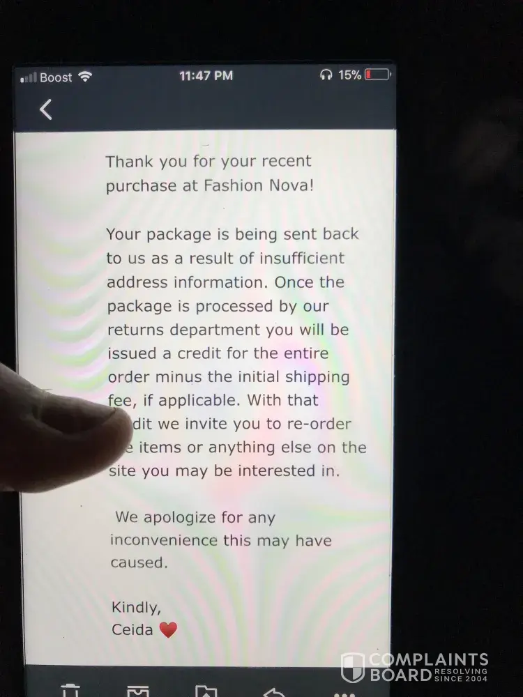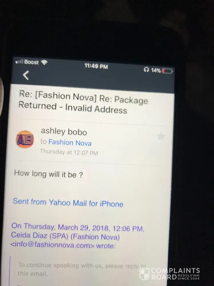 I have send several emails to fashionnova and I was told that there is nothing they can do and I should file a claim with USPS which I did and believe I should not have because it should be fashionnova responsibility to make their customer happy. I will not be ordering anything from here is my problem is not fixed and will make sure I stop my family and friends about this bad customer service. My email is morenike2010@yahoo.com