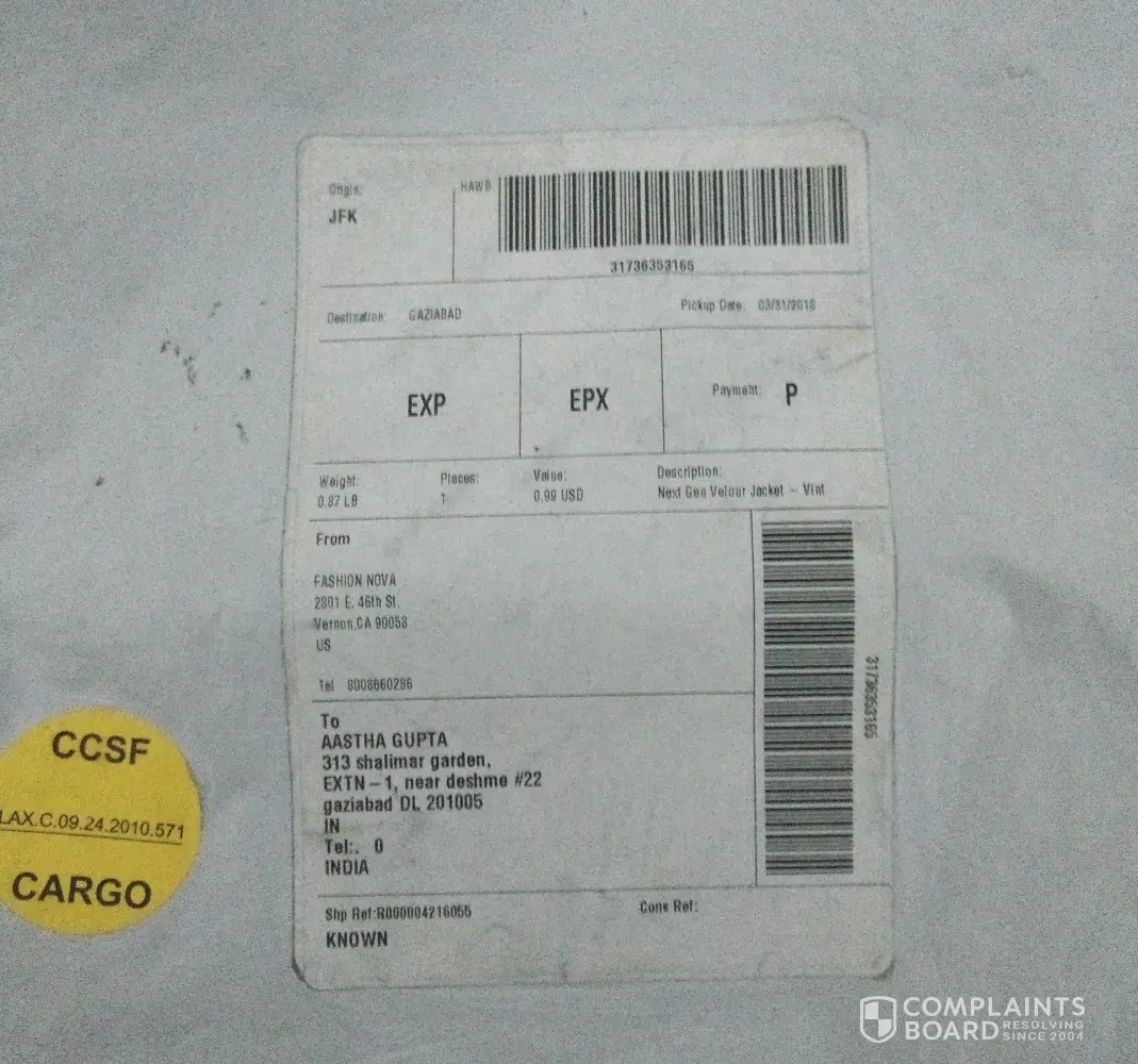 I ordered 3 items from the website, including 1-day shipping and when I got my packages it had nothing that I ordered inside. I emailed Fashion Nova three days ago asking them if they could send the items I payed for and nwvwr got an reply. I called their customer service phone number and they had me on hold for a while. Now I am out of 40 dollars.