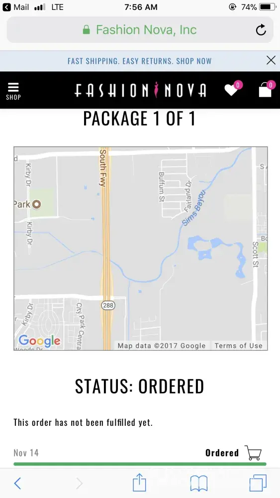 iï¸ am complaining about fashion nova being unprofessional with my tracking email & not sending me any information on where my products are?