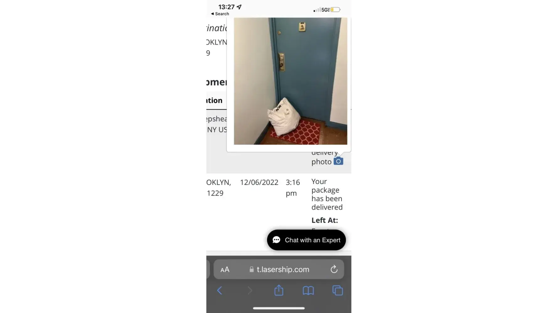 Two buildings after mine, I found the same exact door from the picture they took when delivered on Saturday, Dec. 10th, and asked the neighbors today Friday, Dec. 16th if they had my package. Neighbors told me they haven't seen anything, so my package was stolen because it was delivered to the wrong building with the same apartment number as mine.