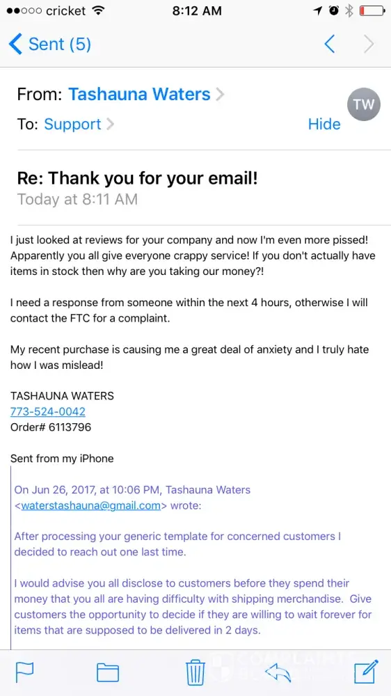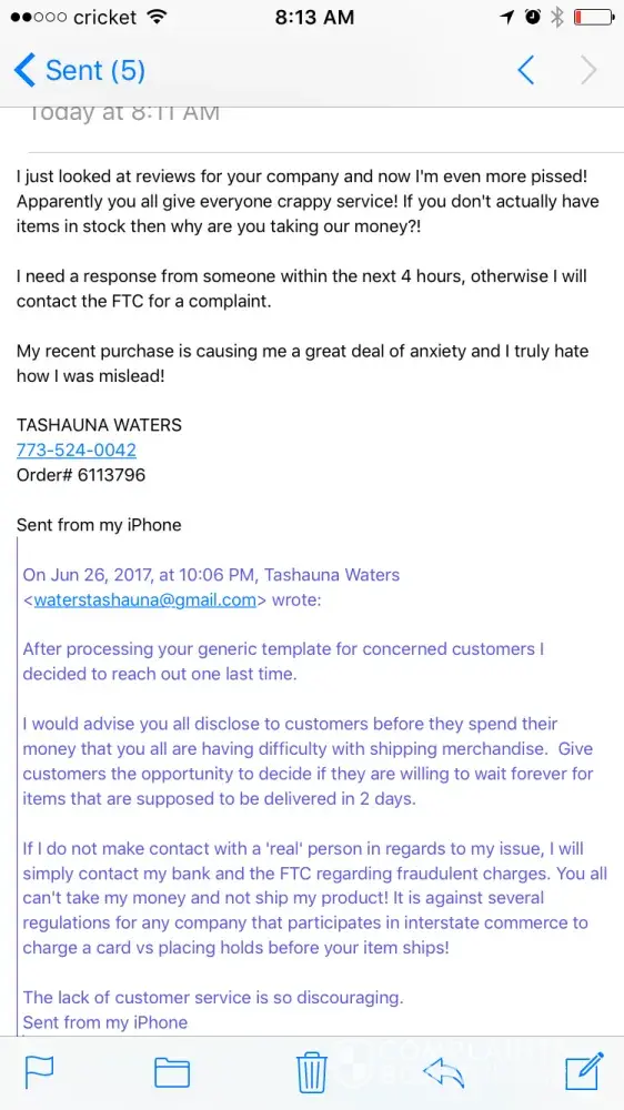 I ordered a bunch of clothes on June 17th for a trip I was going on the following week. Its now June 23 and I still haven't received the package. There is no tracking number. When I login and check the order it says "unfulfilled". I emailed 3 different times and got no response. I called 5x and no one answers even though it says the customer service line is mon-fri 9-5. Im calling my bank to dispute the charges