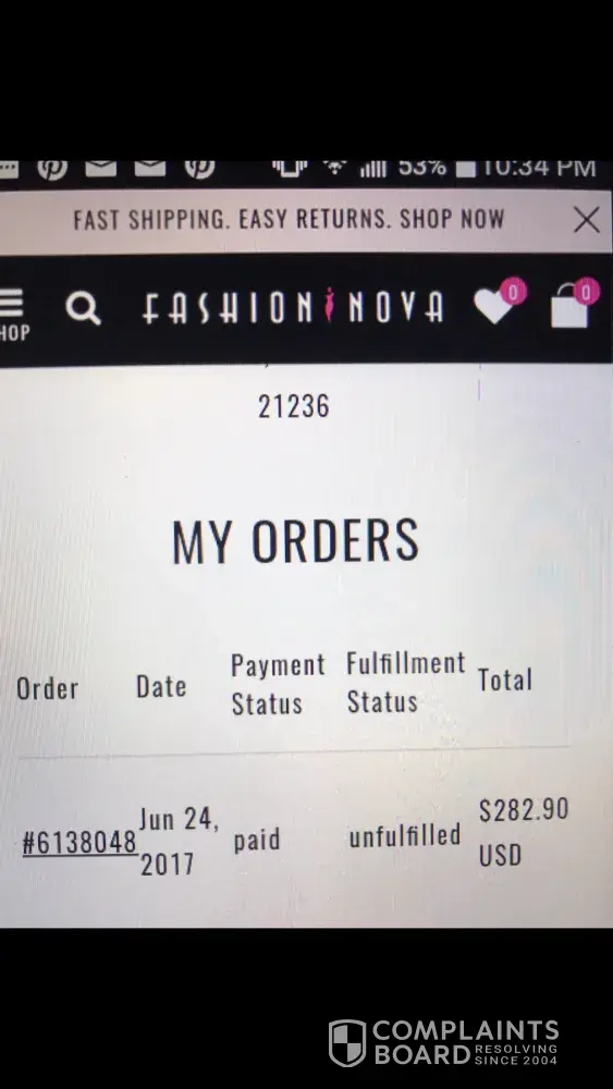 I have had order from fashion nova in June 12