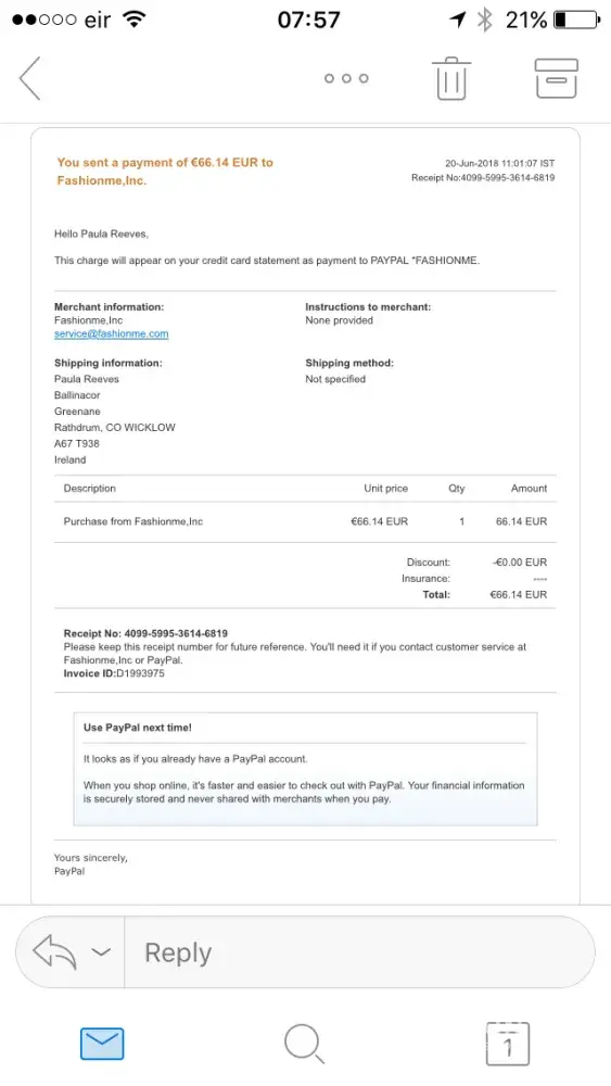 Paid as a PayPal guest..on 20th June