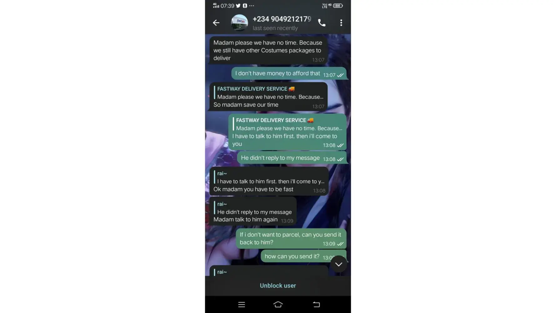 CONTACT OUR DELIVERING OFFICER IN-CHARGE FOR YOUR PACKAGE, MR OWEN