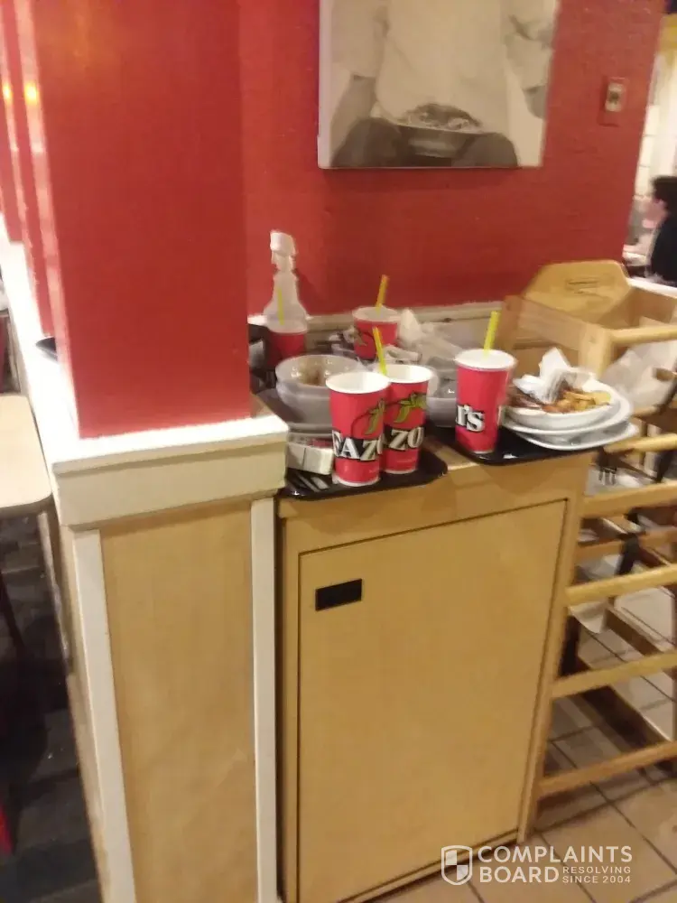 This disgusts me so much that when the workers came around for breadsticks, they didn't think to clear tables first! I personally cleaned a table off for another customer to sit to eat. I do not even work for Fazolis!