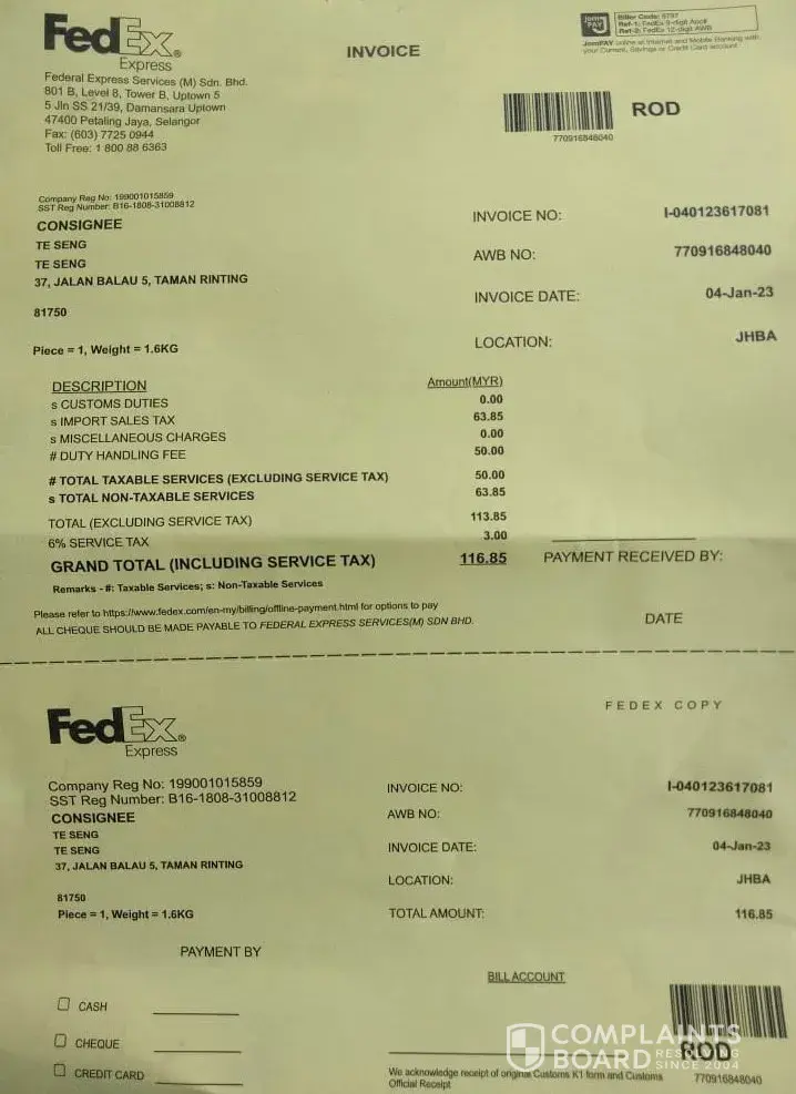 I am disappointed with custom duty handling charge by FedEx unilateral decision.