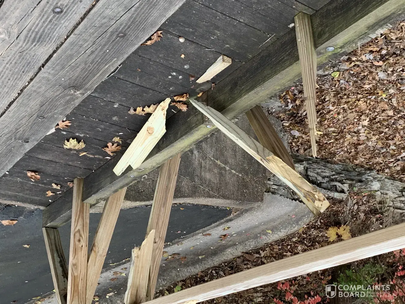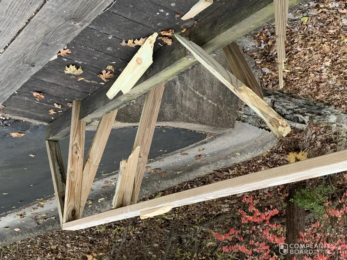 A fed ex driver came across a bridge on our property and ran into the bridge and tore out all of the struts and side rails. This happened a year ago and I had to have the whole bridge redone. I tried for several months to get hold of someone from fed ex at that time and finally gave up. I won't do that this time. I have filed a police report. Estimated repair is $765.00. Tracking no is 9261290273291121430918. My name is Joyce Clemenson. 161 Brewster Rd. Hollister Mo 65672. Phone. [protected]. [protected]