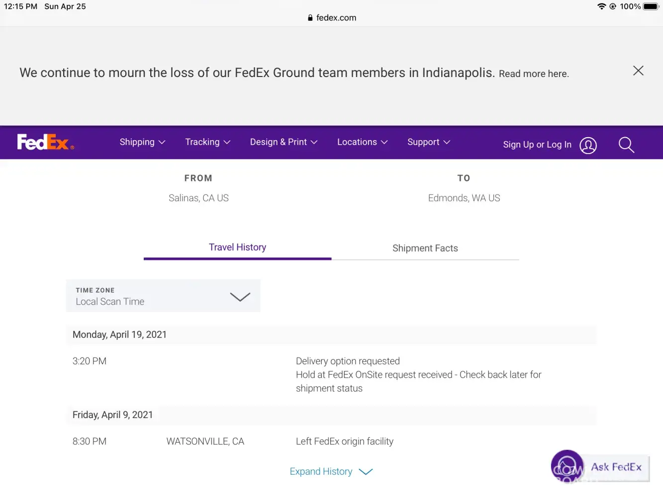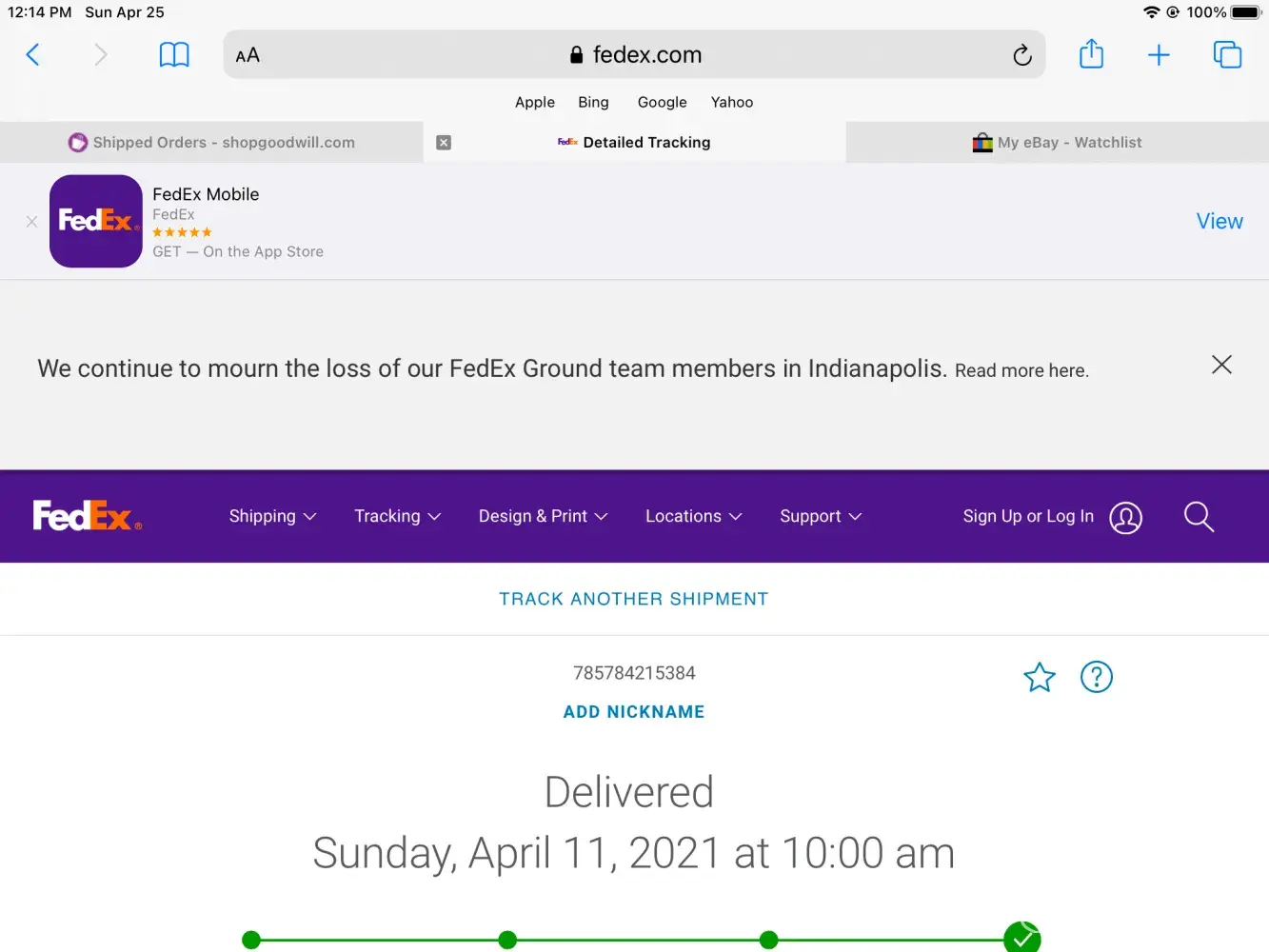 I attempted to contact FedEx again and received a final noticed (Package Delivered on April 11-2021)